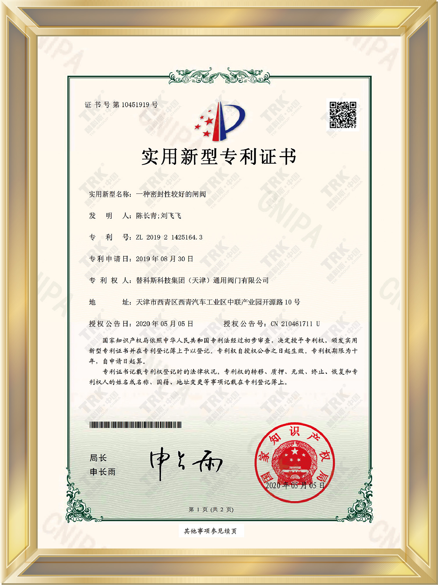特種設(shè)備型式試驗(yàn)證書(shū)-閘閥
