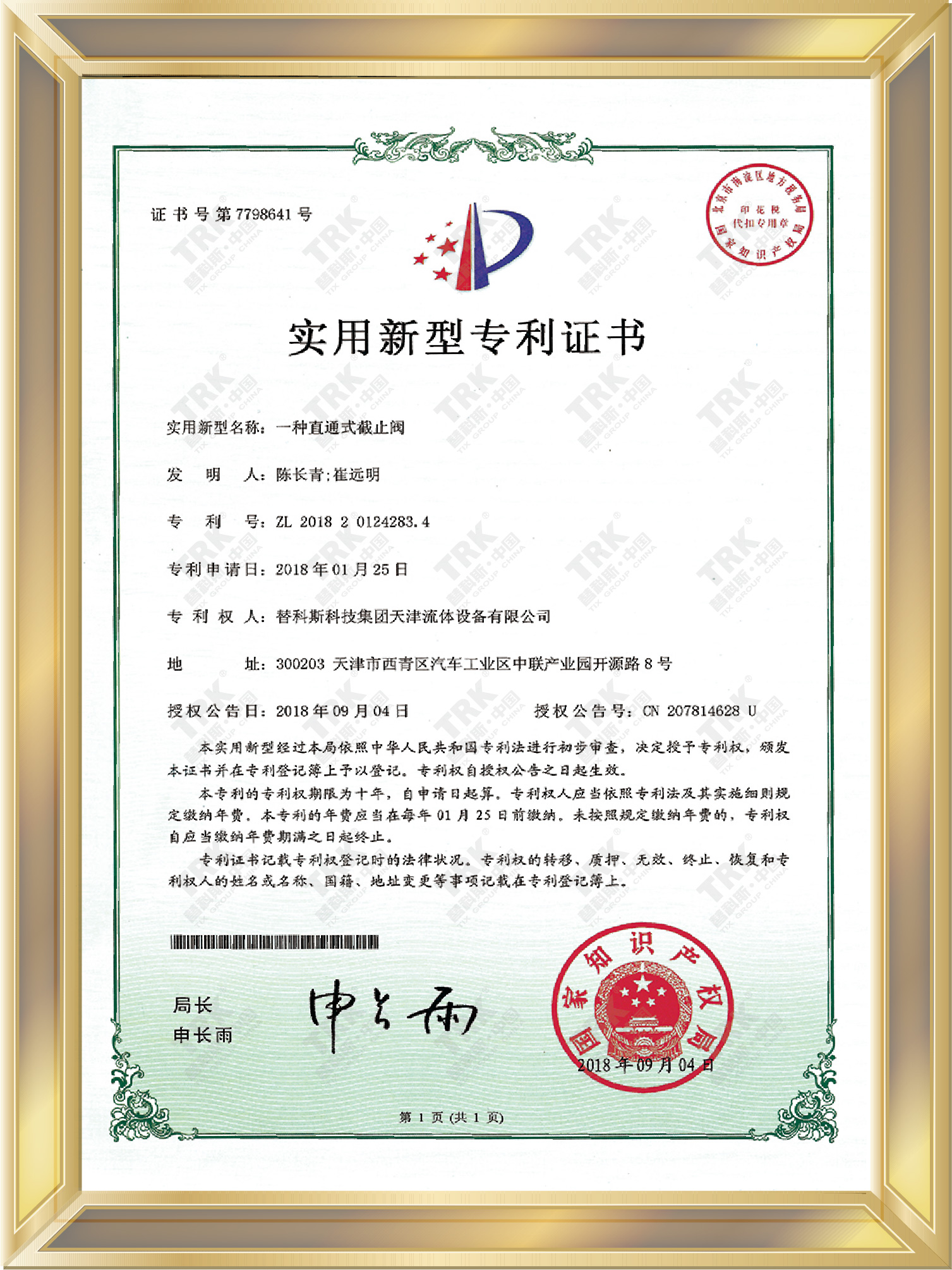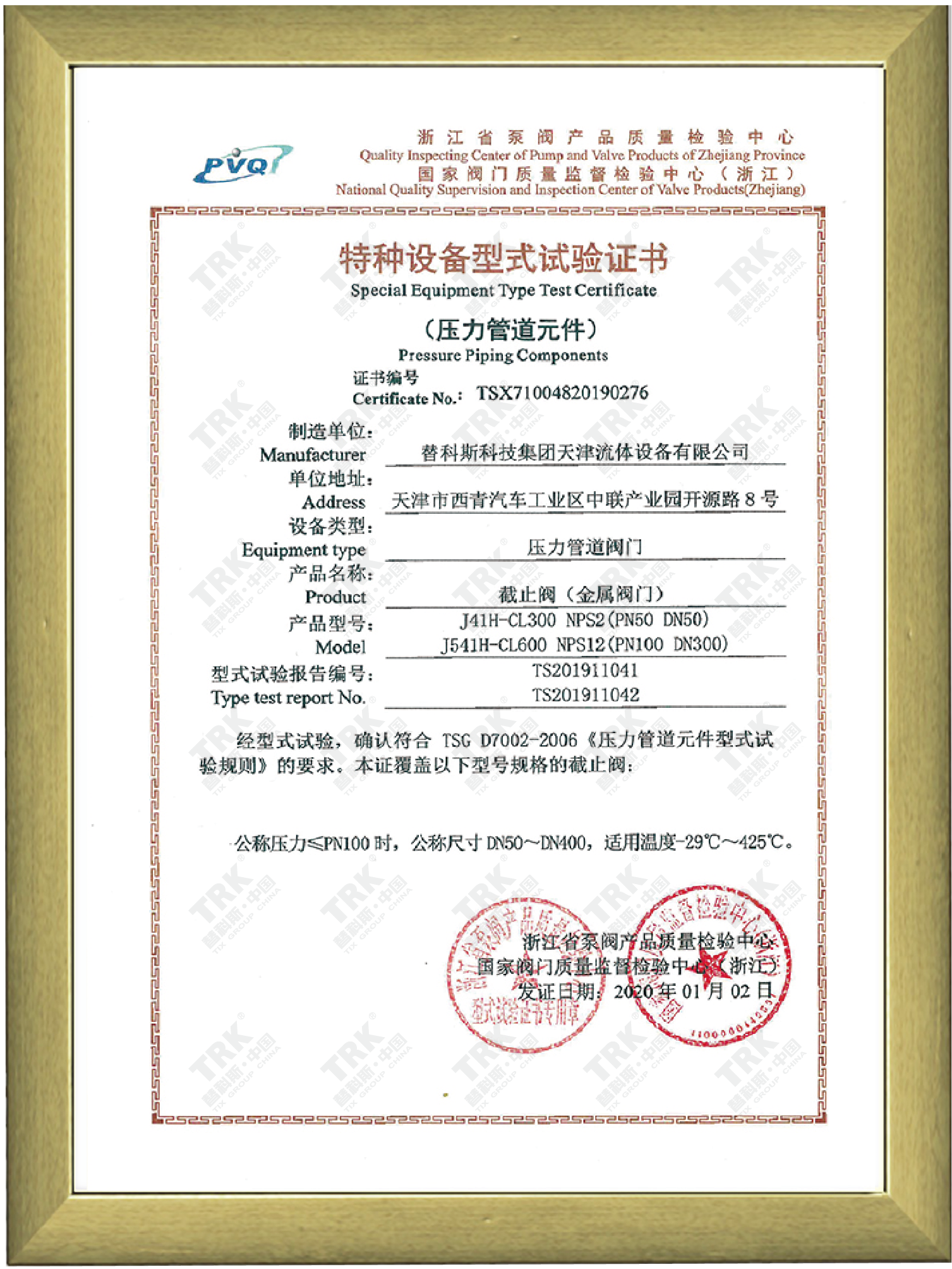特種設(shè)備型式試驗(yàn)證書(shū)-截止閥
