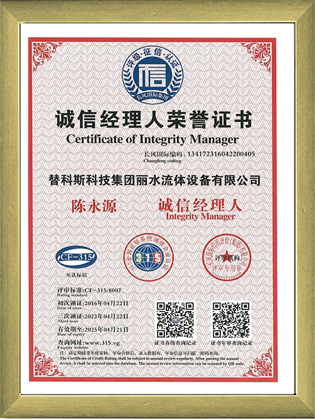 誠(chéng)信經(jīng)理人榮譽(yù)證書(shū)