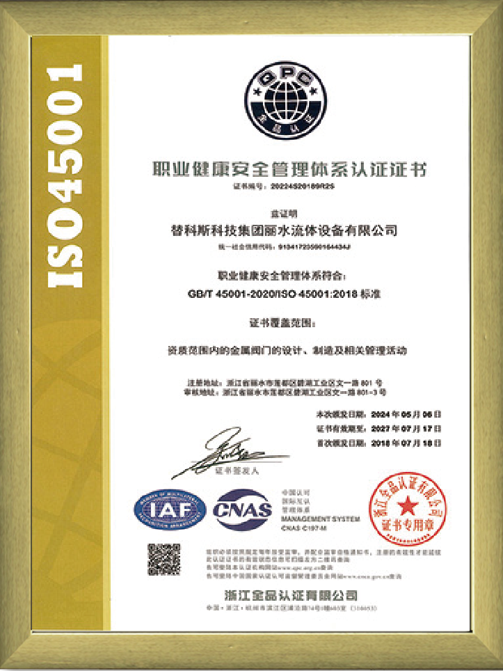 ISO45001職業(yè)健康安全管理體系認(rèn)證證書(shū)